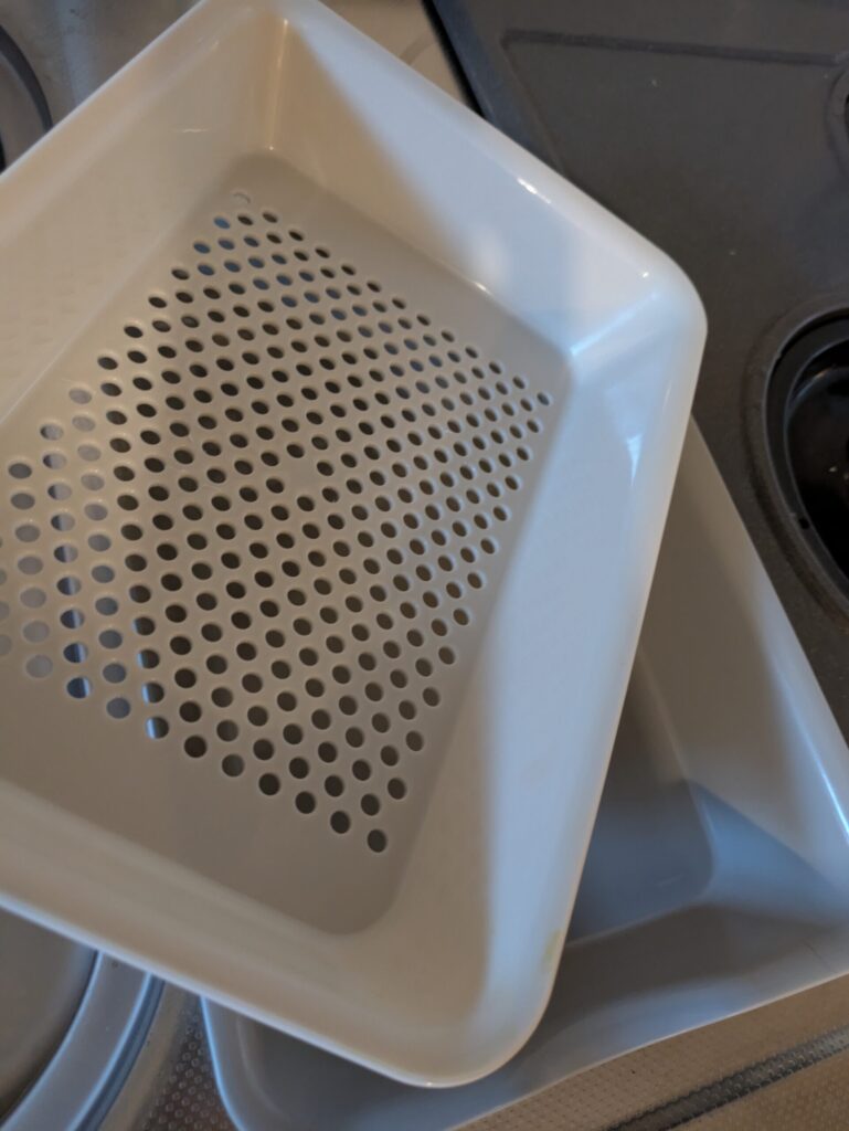 →冷凍の鶏肉はドリップが出るから、受け皿がほしいんですよね。このバットはボウルにもなるし、レンジ調理にも対応している神器なんです。ついでにボウルともお別れ。