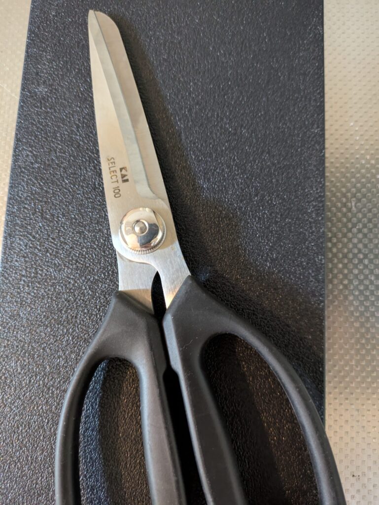 長ねぎとか、ソーセージとか、細長いものを切るのが得意な料理ばさみ。僕のはNITORIの安いやつ。