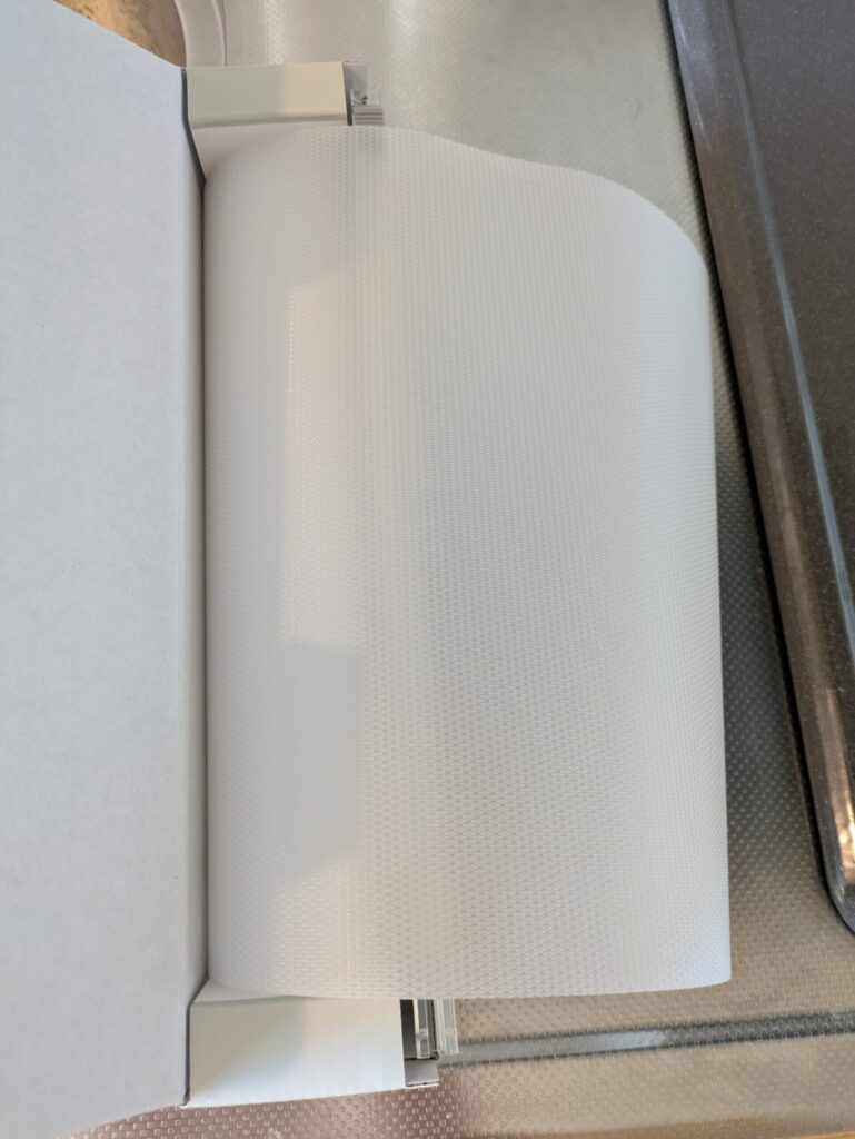 →ラップシートみたいに、ビーッと出して切ったらまな板になります。本来はまな板に敷いて、まな板の汚れやカビ防止と、包丁の刃の保護を目的として使うんでしょうか。